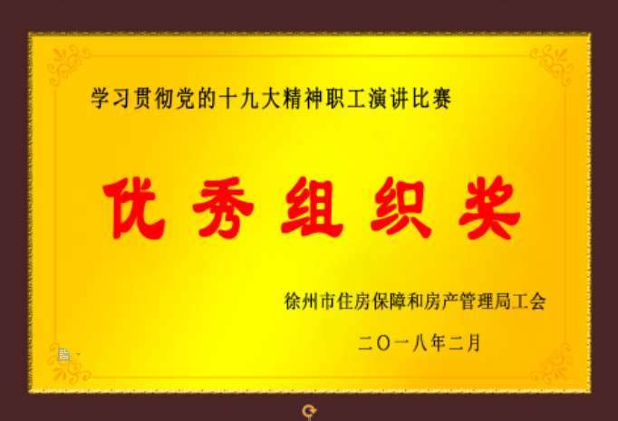 2月2日,房管局工會組織開展學(xué)習(xí)貫徹黨的十九大精神職工演講比賽,公司獲優(yōu)秀組織獎稱號,葛玲、郭寅松分獲二等獎、三等獎。