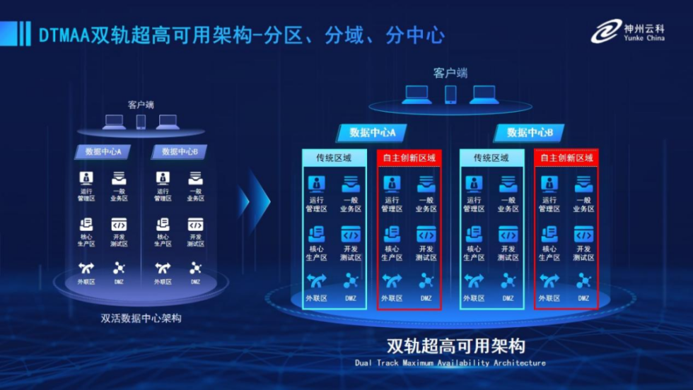 為幫助金融客戶更好地應(yīng)對(duì)數(shù)字經(jīng)濟(jì)時(shí)代對(duì)可持續(xù)性的高要求,實(shí)現(xiàn)“信創(chuàng)”與“數(shù)字化”齊頭并進(jìn),leyu.樂(lè)魚推出了雙軌超高可用架構(gòu)。該架構(gòu)在雙活數(shù)據(jù)中心的分區(qū)調(diào)度基礎(chǔ)上,增加信創(chuàng)域和非信創(chuàng)域的分域調(diào)度,實(shí)行信創(chuàng)域與傳統(tǒng)域應(yīng)用全量部署,使雙中心運(yùn)營(yíng)變?yōu)殡p中心四區(qū)域并行運(yùn)行,互為多活,將“0到1”的單軌建設(shè)道路變?yōu)榉謪^(qū)分域協(xié)同的多活雙軌超高可用架構(gòu)。幫助客戶在新架構(gòu)下,保障“信創(chuàng)”的同時(shí)解決性能瓶頸,提升穩(wěn)定性,保證應(yīng)用可持續(xù)性,最終實(shí)現(xiàn)信創(chuàng)區(qū)域和非信創(chuàng)區(qū)域的平滑過(guò)渡,完成國(guó)產(chǎn)化替代目標(biāo)。